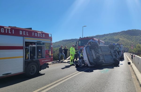 Sul posto sono intervenuti i Vigili del Fuoco e gli agenti della Polizia Municipale, che hanno provveduto a mettere in sicurezza l’area e a soccorrere la donna che, rimasta ferita ma non in maniera grave, è stata trasportata in ambulanza al Pronto Soccorso del "Santa Maria della Stella" per gli accertamenti del caso. L’incidente ha causato forti ripercussioni sul traffico. La viabilità è stata temporaneamente deviata sulla variante, in direzione Ponte Pertini, per consentire le operazioni di rimozione del mezzo e la messa in sicurezza della carreggiata.