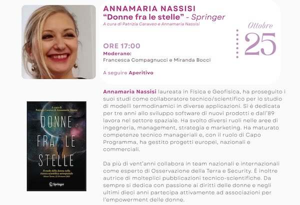 "Donne fra le stelle" è stato curato da Annamaria Nassisi insieme a Patrizia Caraveo, che si collegherà da remoto, con la prefazione di Amalia Ercoli Finzi, la prima ingegnera aerospaziale e una delle personalità più conosciuta nel campo delle tecnologie aerospaziali. Il libro nasce dalla volontà di esprimere in maniera esaustiva le problematiche e le opportunità legate all'astrofisica e alle tecnologie spaziali, campi di studio che vedono predominare nettamente le figure maschili. Obiettivo del lavoro è quello di avvicinare i giovani e soprattutto le ragazze alle cosiddette discipline STEM (Science, Technology, Engineering e Mathematics).