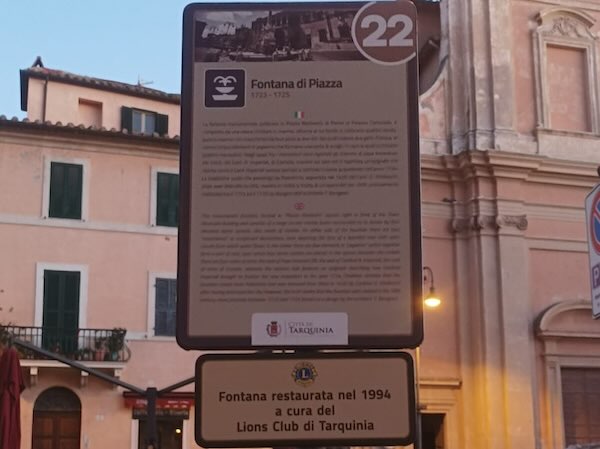 Il Lions Club di Tarquinia ha riposizionato una nuova targa commemorativa che ricorda l’importante restauro conservativo della fontana monumentale di piazza Giacomo Matteotti, realizzato nel 1994 dal Club sotto la presidenza di Giuseppe Tini. “All’epoca del restauro – ricorda la presidente del Lions Club Tarquinia, Roberta Ranucci –, fu organizzata una bellissima cerimonia inaugurale, in collaborazione con l’allora sindaco Maurizio Conversini, alla presenza di numerosi cittadini e rappresentanti delle istituzioni. In quell’occasione venne collocata nella pavimentazione una lastra di peperino a ricordo dell’intervento, che nel tempo si è deteriorata fino a diventare illeggibile.
