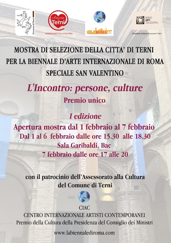 Si tratta di un’importante tappa di selezione in vista dell’evento capitolino di maggio che si svolgerà nell’area archeologico del Domiziano e che prevede un premio unico. Al termine della collettiva – in esposizione anche opere dell’artista messicano Samuel Garcia e un’opera di Joel Amloot proveniente dalla Germania – sarà annunciato il terzo nome accanto a quello dei due artisti già selezionati. Durante i pomeriggi è prevista a degustazione di mezcal messicano, a conferma del respiro cosmopolita dell’evento che unisce i linguaggi universali dell’arte a quelli dei sentimenti.