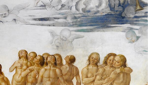Questa città è proprio l’umanità risorta che Signorelli rappresenta integra e vigorosa sulla pianura ultraterrena della cappella Nuova. In essa non regna il caos e la divisione del mondo governato dall’Anticristo, ma l’aspirazione a quel bene comune fondato sulle virtù etiche e civili, le uniche capaci di far riemergere l’umanità dalla barbarie per elevarla verso la concordia universale.