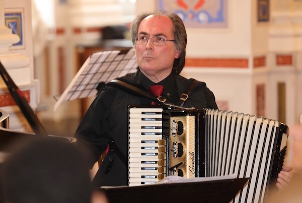 "La fisarmonica è il tramite col quale mia madre, che non ringrazierò mai abbastanza per aver intuito - ancor prima di me - quale potesse essere il mio futuro, mi mise in mano la musica, quando avevo appena compiuto tre anni. Rappresenta il primo amore e, in un certo qual modo, la mia natura più autentica. Il pianoforte è una scelta successiva, consapevole e determinata, alla quale devo totalmente la mia evoluzione culturale e intellettuale. Ho tenuto ben lontani fra loro i due strumenti, nella prima parte della mia vita. Ora, in età pienamente matura, sono diventati complementari alla mia essenza spirituale. Come se le anime di Chopin e Piazzolla, immagino quanto questa affermazione farà inorridire gli accademici, si tenessero per mano, con deferenza e lealtà, mentre percorrono assieme il sentiero della creatività".