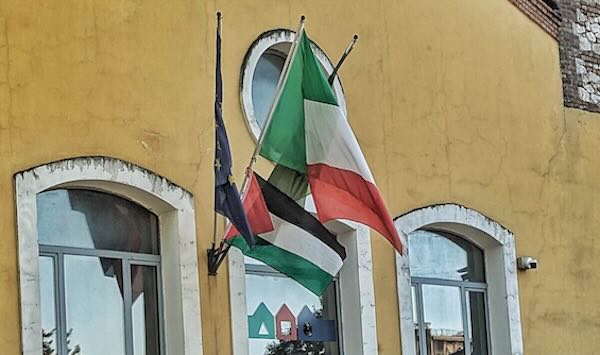 Bandiera della Palestina esposta al Centro Multimediale