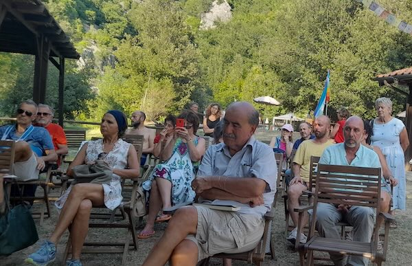 "Non posso rimanere collegato oltre. Ho un drone che gira sul punto dal quale sto trasmettendo" ci dice Halasamm Selmi. "Grazie per quello che fate, Shukran (شكراً)". Parole quasi anticipatrici di quello che accadrà poche ore dopo con l’uccisione di cinque giornalisti di Al Jazeera. In una giornata di caldo torrido all’interno del Parco Termale delle Tane del Diavolo, a Parrano, è riuscita l'annunciata iniziativa su Gaza con Articolo 21 - Presidio Orvietano, l’Associazione "No Bavaglio", l’Associazione "Tana Libera Tutti", che si occupa della gestione delle terme, e il Comune di Parrano.