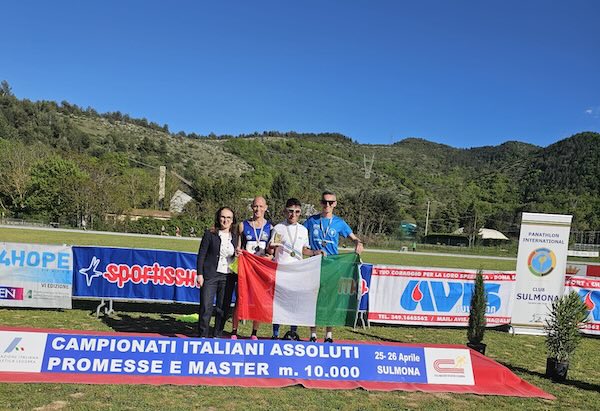 Sono quasi le 16 di sabato 25 aprile e allo Stadio di Sulmona, sede dell’evento, siamo sulla linea di partenza per i 10.000 metri, la gara più lunga che si disputa in pista. Prevedo 25 giri infernali dove non contano solo le gambe. Ho il quarto tempo di accredito, Adim Ismail è il migliore. Allo sparo si mette subito al comando imponendo un ritmo molto duro. Tengo abbastanza bene. A conclusione del primo chilometro siamo rimasti in tre. Il passaggio è stato veloce (3’10”), ragiono sulla temperatura, molto elevata e sul rischio di una crisi, sempre dietro l’angolo.